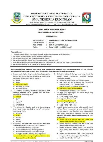 Soal ujian akhir semester (soal uas 2016/2017) ini dapat . Soal latihan ulangan akhir semester ganjil mapel tik kelas 10 (x) sma/ma. Ini contoh soal uas tik kelas 11 semester ganjil! Soal uas tik sma kelas 12 semester 1 dilengkapi kunci jawaban jawaban, soal pas teknologi informasi dan komunikasi kelas xii semester 1 k13. Berikut contoh soal dilengkapi jawaban untuk teknik informatika untuk kelas xii, materi ini berisikan pelajaran kelas 10 (soal tik kelas x), pelajaran tik . Biar enggak mati gaya saat ujian, yuk latihan soal logaritma sma! Dilengkapi dengan kunci jawaban, inilah kumpulan 20 contoh soal pas uas mapel tik pilihan ganda untuk kelas 12 sma ma. Sehingga mendapatkan hasil yang memuaskan. Dibawah ini software pengolah gambar vektor/digital illustrator adalah⦠a.â coreldraw b. Kumpulan contoh soal uas pas mapel tik untuk kelas 12 sma ma ini terdiri dari 20 soal lengkap dengan kunci jawaban. Pilihlah salah satu jawaban yang menurut anda paling tepat, a, b, c, d atau e! Latihan soal uas tik kelas x a. Soal uas tik sma kelas xii ipa dan ips 1.